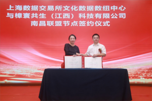 8月31日,上海数据交易所文化数据数纽中心南昌联盟节点签约仪式成功举办。作为贯彻落实数字中国战略部署、推动文化数据市场化价值化的关键实践,该联盟节点的成功签约,正式开启南昌区域文化数据确权、交易与流通核心枢纽建设,为数字经济与文化产业深度融合注入强劲动能。在浙江省长三角城乡社区发展研究院院长朱胜进、上海市计算机行业协会秘书长裘维东、博鳌国际康养文旅大会副主席郭小嫚、中矿文旅集团、中矿能源集团有限公司党委书记朱洁四位嘉宾的见证下,上海数据交易所文化数据数纽中心副主任谢议萱与樟寰共生(江西)科技有限公司